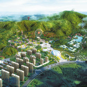 在谷山森林公园规划中结合旅游需求设计主题游乐园,满足不同人群的游乐体验,结合地形将规划湖南省内最高的摩天轮观光塔,高达130米,滨水新城与旖旎风光尽览无遗。