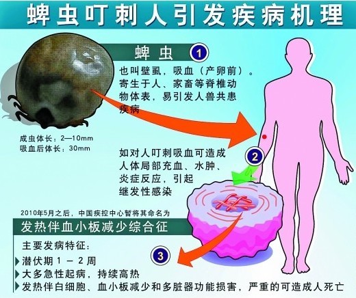 发热伴血小板减少综合征致死率在10%至30%之间,目前尚无有效的疫苗和治疗方法。除被蜱虫叮咬外,接触患者的血液和体液也可能被感染。