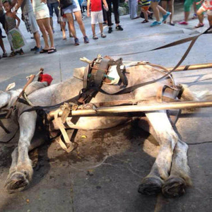 昨日,深圳野生动物园一匹拖拉观光车辆的马走在上坡路上时,突然倒地,不到一分钟就死亡。事发时,马车上坐了四五位乘客。一些游客指称拉车的马是拉客太累死亡,一些保安证实了这一说法,称该马“不停拉客”,园方则称解剖后发现马死于心脏衰竭,“与累无关”。
