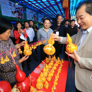 10月10日,县委书记邓雁平推介横桥乡文化产品公益葫芦。