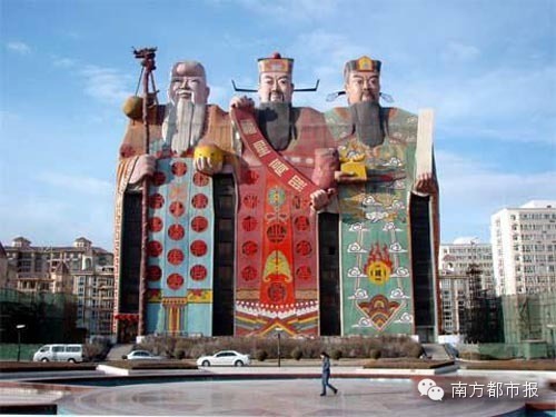 2009年12月15日, 北京,“福禄寿”象形建筑天子大酒店。天子大酒店被网民称为“中国最彪悍的酒店大楼”,它的外形是彩塑“福禄寿”三星像,总高41.6米,2001年12月荣获上海大世界基尼斯之最大的只有使用功能的象形建筑。
