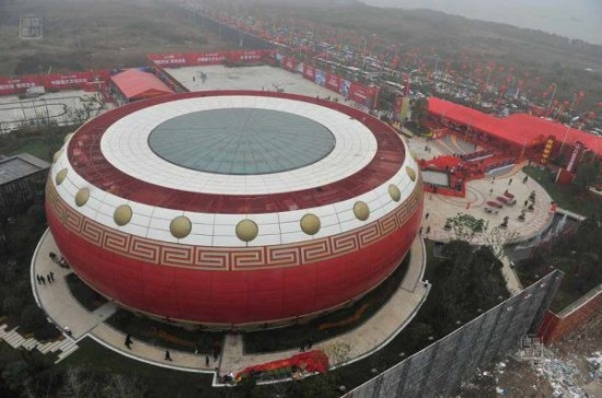 【大花鼓】2013年11月2日,安徽合肥滨湖新区,直径61米高18米,以凤阳花鼓为造型的鼓型建筑正式开放,其“大花鼓”的造型也遭到了网友的吐槽。