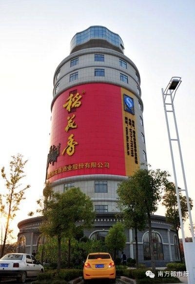 2012年11月1日,湖北省宜昌市夷陵区稻花香集团厂区内“酒瓶”形状的办公大楼(左),五粮液集团厂区内“酒瓶”形状的办公大楼(右)。