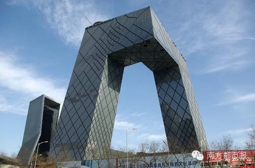 “大裤衩”的模仿者:2014年5月19日,河南省郑州商都路京港澳高速口,一建筑因外形酷似央视“大裤衩”遭围观。