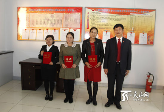 若克叶木·亚森、阿曼古丽·麦麦提、阿依古丽·斯依提接到中国石油新疆销售公司的聘任书。