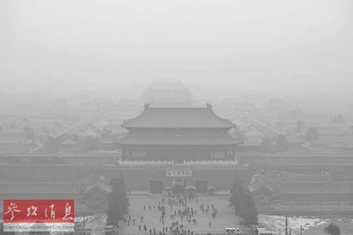 故宫博物院被雾霾笼罩。 新华社发王全超 摄