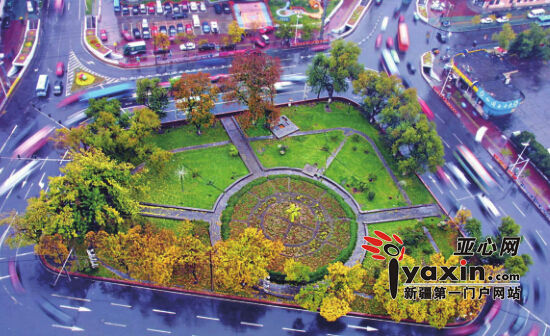 图片从上至下分别为2008年10月5日,记者俯拍的北门转盘小游园;2012年12月16日,记者俯拍的北门转盘小游园;2014年10月23日,记者俯拍的北门转盘小游园。亚心网首席记者朱翊 摄