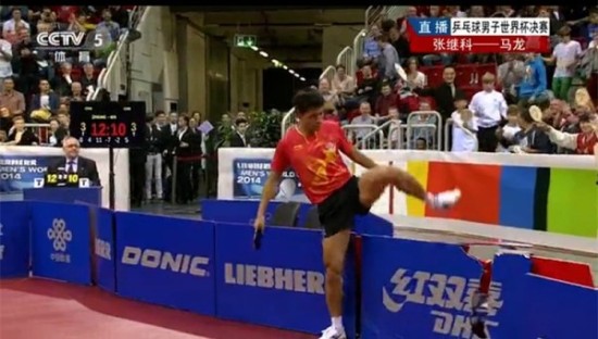 张继科夺冠激动踹碎广告牌 冠军奖金被罚光