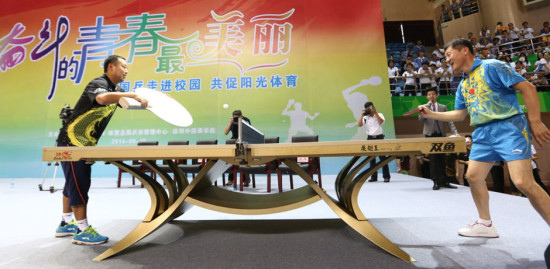 15日上午,国家队“奋斗的青春最美丽”走进校园互动首次进入中学,深圳外国语学校成为了国乒这一步“突破”的宠儿。在活动中,外国语学校的同学们牢牢抓住这次与国家队亲密接触的机会,问的问题既有针对性又“尖锐”,在回答问题时,张继科坦白他在打比赛时也会非常紧张、马龙和同学们分享了如何才能在遇到困难时坚持不屑、王皓也对同学们揭秘在奥运会决赛输给队友到底是怎样的心情。