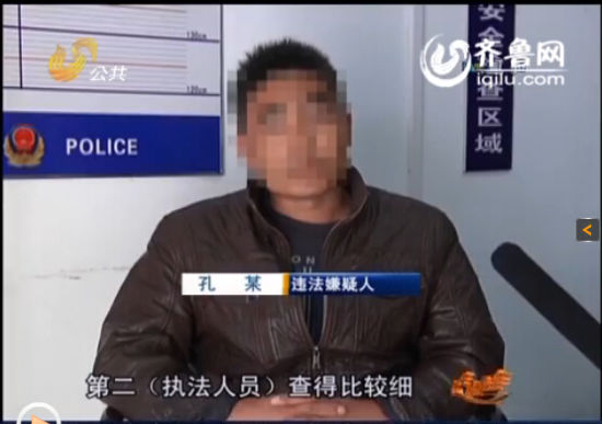 违法嫌疑人孔某接受山东广播电视台公共频道《民生直通车》记者采访时说,“当时觉得一是挺紧张,第二(执法人员)查得比较细,当时觉得有点反感。”