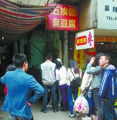 排在记者前面的,是长沙理工大学的一名女生。“你们学校离这里可不近啊。那边没有臭豆腐卖吗?”见记者疑惑,女孩一副熟客的语气:“在长沙吃臭豆腐,就要吃‘五娭毑’的。要吃美味,多跑些路算什么。” 仿佛为了印证我的“无知”一般,听了我们的对话,好几个人用一种奇怪的眼神看了看我。