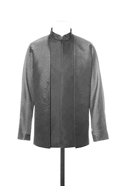 男领导人服装采取了立领、对开襟、连肩袖,提花万字纹宋锦面料、饰海水江崖纹的设计
