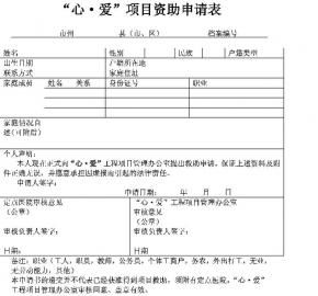 3.填表审批:申请人或其法定监护人持户口本(身份证)、农合证,到定点医疗机构填写《“心·爱”项目资助申请表》后,上报审批。