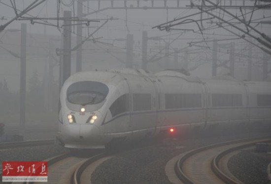 中国一辆高速列车在大雾中前行。(资料图)