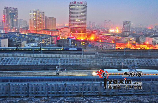 ?? 11月16日19时17分,由哈密站出发的D8805和谐号动车进入乌鲁木齐市,毗邻的新老铁路上两列火车的交错,迎来了新疆高铁的新时代。亚心网记者陈峰摄