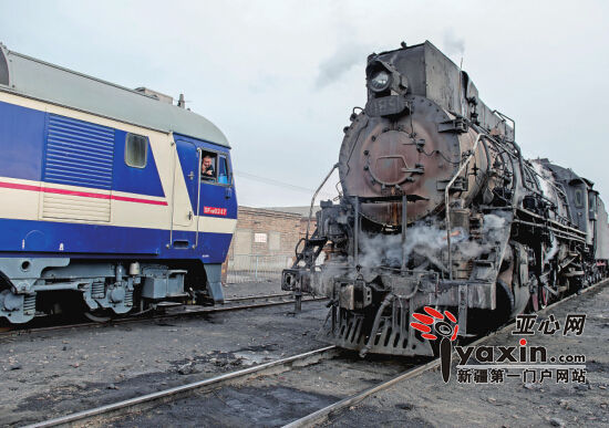 亚心网讯(记者于惠如)11月16日上午,新疆高铁首发动车D8602次列车驶出乌鲁木齐南站,以200公里的时速驶往哈密;与此同时,在哈密三道岭煤矿,动车的“祖爷爷”——蒸汽机车伴随着哐当哐当声,喷着白烟缓缓往矿区开去。
