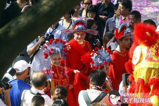 【延伸阅读】 古镇举办水乡中式婚典 凤冠红袍洋面孔引围观
