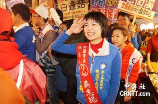 台海网(微博)11月18日讯据中评社报道,国民党桃园市长候选人吴志扬与夫人洪秀华,选前展开密集式市场扫街拜票,可以看到,这位“吴家媳妇”身段相当柔软,表现称职,尽量不抢夫婿风采,“夫人牌”扫街拜票,还有特有的连环3动作。