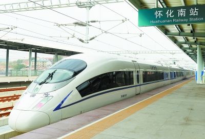 11月18日13时24分,和谐号CRH380B型电力动车组缓缓驶入高铁怀化南站。当日,沪昆高铁长沙至怀化段进入试运行阶段。按照计划,沪昆高铁长怀段将于年底通车。潘雨 摄