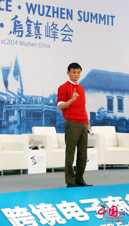 首届世界互联网大会分论坛跨境电子商务和全球经济一体化在浙江乌镇举行。11月20日上午,在“跨境电子商务和全球经济一体化” 分论坛上阿里巴巴集团执行主席马云在会上发表了主题演讲。 中国网 董宁 摄影