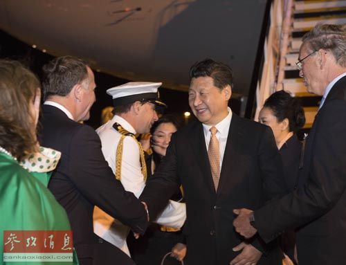 报道说,习近平和夫人彭丽媛以及160名随行人员在结束对澳大利亚的访问后于19日晚抵达奥克兰。