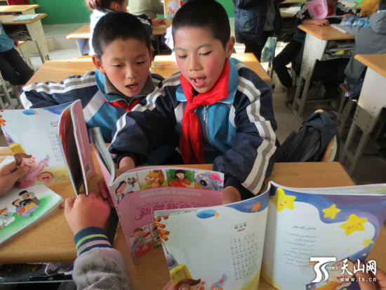 ????????天山网讯(通讯员杨建军 王陆斌摄影报道)“阿尼帕妈妈真有福,她有一张全家福。有维吾尔族,有汉族,有回族,还有塔塔尔族……这么多儿女真幸福。”这是11月20日博湖县第三小学五1班,课前诵读的内容。近日来《新疆新童谣》走进了博湖,来到孩子们中间,成为孩子们爱不释手的“口袋书。”