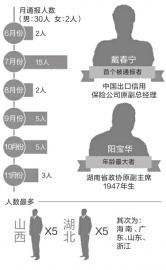 在被通报的通奸官员中,涉及人数最多的是山西和湖北。年纪最大的是67岁的湖南省政协原副主席阳宝华。