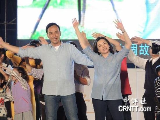 28日的选前之夜,就在朱立伦致词结束后、与众人合唱竞选主题曲“有梦的孩子”时,舞台前方的中央走道,缓缓步来他的太太高婉倩,穿着与朱立伦一样的“情侣装”,朱立伦特地走去牵她登台,夫妻两人总算公开合体造势。