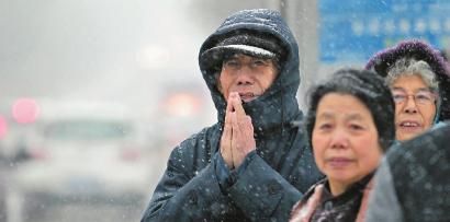 “再等一会儿就来了。”妈妈安抚着女孩。“妈妈,我被雪冻感冒了。”小女孩很夸张地打了个喷嚏。妈妈被逗乐了,把小女孩抱起来等。