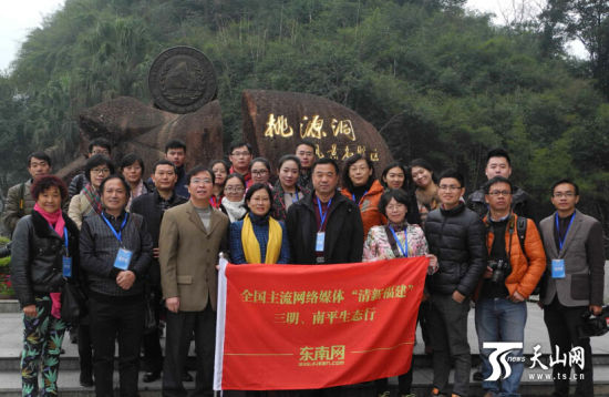 ????????天山网永安讯(记者单晓华摄影报道)“吾所见一线天数处,武夷、黄山、浮盖。未曾见如此大而逼,远而整者”——这是明代旅游家徐霞客行至福建永安市的桃源洞时,对景区内“一线天”的赞语。12月15日,全国网媒“清新福建”生态行的记者来到桃源洞景区,见识了徐霞客笔下的胜景。
