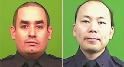 两名被枪杀的警员,40岁的拉莫斯(左)和刚刚新婚两个月的刘文健
