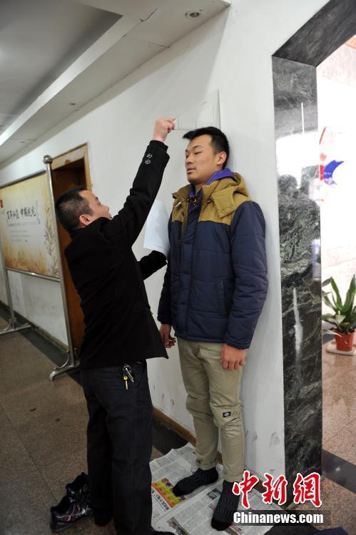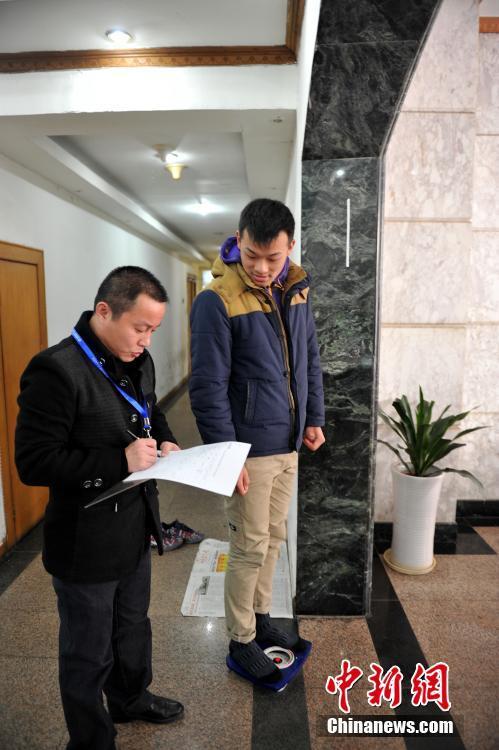图为一名报考学员正在测量身高。 刘占昆 摄