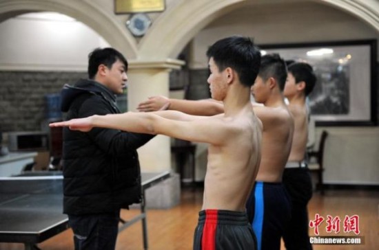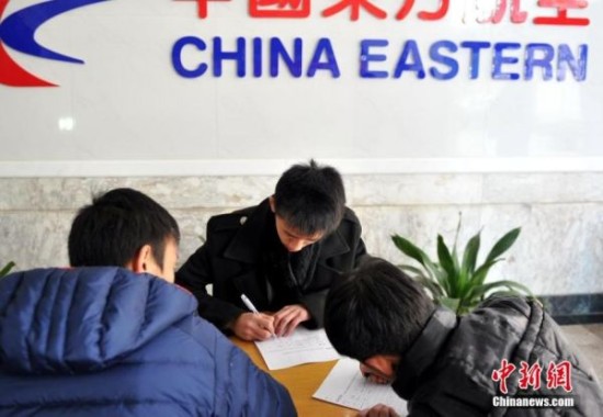 今年,中国东方航空公司首次在江西省一次性招收飞行员50名。12月22日,在东航江西分公司一楼大厅,来自江西省各地考生冒着严寒聚集于此,进行身高、体重、视力、外科等体检项目。图为外科“身体初检”环节,招生考官正在检查报考学员的身体协调能力。 刘占昆 摄