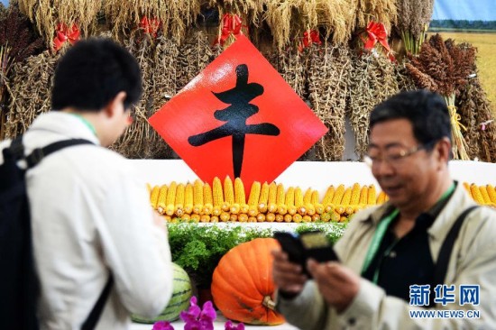 这是黑龙江省农科院绿色食品展区展出的玉米(9月26日摄)。 新华社记者 王凯 摄