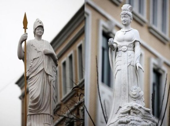 校园内树立雅典娜女神塑像 面谱是校董之一