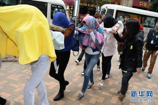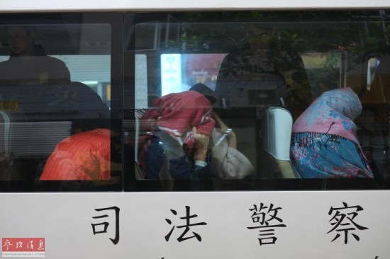 1月12日,案中涉嫌卖淫女子被送往检察院。 1月11日晚,澳门特区政府司法警察局宣布,10日侦破一宗特大操控卖淫案,抓获粤港澳三地操控卖淫嫌犯6人;涉案卖淫女多达96人,当中95人来自内地,1人来自越南。新华社记者 张金加 摄