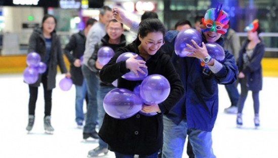 资料图片:2013年11月11日,在长春某商场内举行了一场别开生面的冰上假面舞会,吸引大量单身男女前来参加。据了解,冰上假面舞会包括才艺展示、互动游戏等环节。中新网