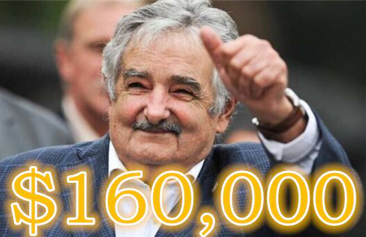 乌拉圭总统穆希卡号称是世界上最穷的总统,年薪16万美元,其中90%被捐给了国家社会福利项目。他自己保留的一部分,刚刚超过乌拉圭民众的人均月收入775美元。至于房产什么的,他现在住的农场,在五环开外,没有自来水,关键这还是他妻子而不是他本人的房产。2010年,官方审计穆希卡的家产为1800万美元,这主要来自他那辆甲壳虫。