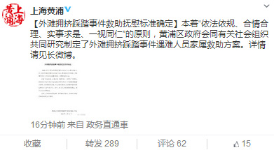(原标题:上海外滩踩踏事件遇难者家属将获80万抚慰金)