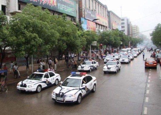 资料图片:安徽灵璧县警车为镇党委书记出殡开道。现代快报