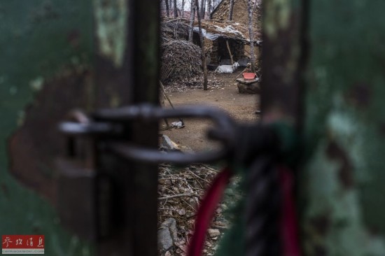 2015年1月25日,山东沂南,记者探访传闻埋着抗日名将张灵甫的遗骨的马牧池乡董家庄村刘存林家。刘存林的三女儿站在自家屋前,关着大门不让任何人靠近。就在这堵墙后,就是传闻埋着张灵甫尸骨的羊圈。