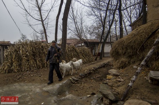 2015年1月25日,山东沂南,记者探访传闻埋着抗日名将张灵甫的遗骨的马牧池乡董家庄村刘存林家。刘存林最近几天都不在家,因为前来采访的媒体太多,让他有些心烦,他就出去放羊消磨时间。