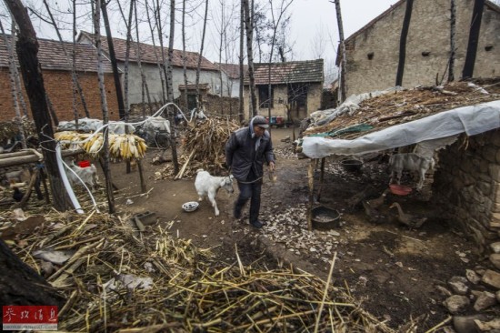 2015年1月25日,山东沂南,记者探访传闻埋着抗日名将张灵甫的遗骨的马牧池乡董家庄村刘存林家。放羊回来的刘存林。