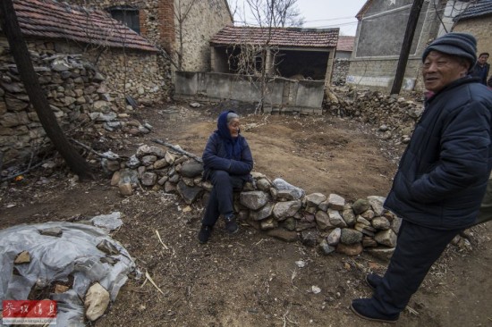 2015年1月25日,山东沂南,记者探访传闻埋着抗日名将张灵甫的遗骨的马牧池乡董家庄村刘存林家。刘存林家隔壁的王老太对村里流传的“橡皮腿”故事耳熟能详。