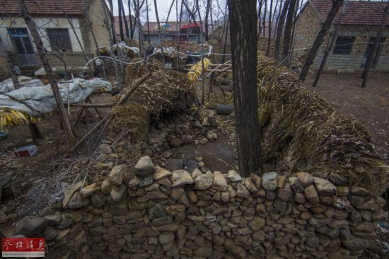 2015年1月25日,山东沂南,记者探访传闻埋着抗日名将张灵甫的遗骨的马牧池乡董家庄村刘存林家。刘存林屋旁的小院。