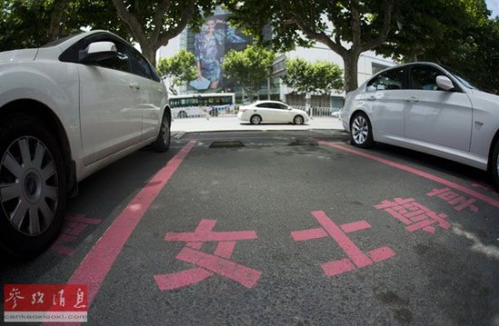 参考消息网7月21日报道 外媒称,大连大都会商场前出现了多个涂有粉红色标识的停车位,这些车位标有“女士尊享”四个大字,比一般停车位宽30厘米左右。