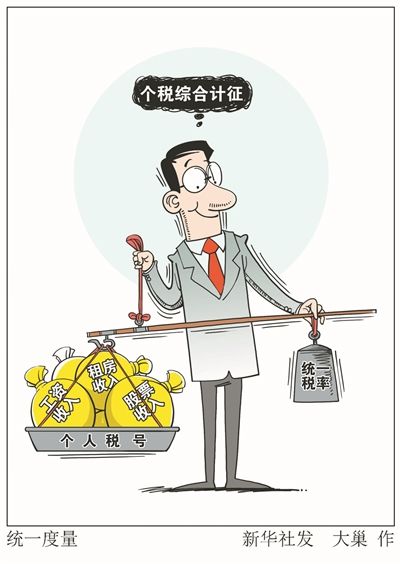 个税改革的目标是“综合计征”,十分专业的术语。举例来说明,一边是很多筐,里面分别装着个人的工资收入、股票收入、租房收入等,这些收入用不同的税率计征个税,结果就是低收入者与高收入者交的税差不多;一边是一个大筐,把所有的收入放到里面用统一的税率计征个税,低收入者少缴税,高收入者多缴税,后者就是“综合计征”。