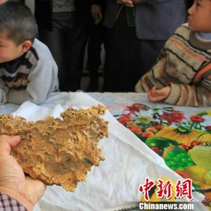 新疆青河县一牧民上周意外捡到重7.85公斤公斤左右的一块狗头黄金,这块黄金酷似中国地图。朱新峰 摄(来源:中新网)