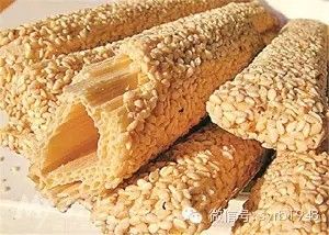 2、待锅内砂糖粒子烧化,水分基本蒸发,糖浆烧得较稠时,可用一根筷子挑起一点糖浆即放入盛有冷水的碗中,糖冷却后变硬,发脆可放入猪油,再加芝麻(如糖经冷水冷却后发粘,需继续进行熬制),待芝麻入锅后,锅子要离炉搅拌均匀,倒入事先准备好的盘内(盘内涂油以防粘)压平;
