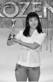 去年,刘颖参与制作的《冰雪奇缘》获得奥斯卡最佳动画长片奖,刘颖与小金人“合影”